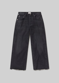 The ‘Ayla’ offers a refined take on the baggy silhouette with a relaxed fit that sits away from the body while maintaining a clean, intentional shape. The ‘Bronson’ wash is a washed-out black with soft fading and a raw hem, lending a subtle edge to the cropped length. Crafted from rigid regenerative cotton with a soft hand, it styles effortlessly with everything from crisp shirting to slim knits. This style is true to size and intended to sit relaxed at the natural waist. For a higher and closer fit, we recommend sizing down. Looks Like: Washed out dark black denim pant with raw hem Feels Like: Rigid, non-stretch cotton denim with a soft hand for all day wearability This product is made with regenerative cotton from Citizens of Humanity Group’s Regenerative Cotton Program. Our program collaborates closely with farmers both domestically and internationally, nurturing growth, fostering education, and encouraging the widespread adoption of regenerative agricultural practices. From our HUMANITY Collection DETAILS Closure: Button Fly Rise: 12 3/8" Inseam: 27" Leg Opening: 20 1/2" Model is 5'10" and wearing a size 27 Fabric Content: 100% Regenerative Cotton Care Instructions: Machine wash cold inside out with like colors. Do not bleach. Tumble dry low. Made in Turkey with imported materials 2117-3007_BRSON