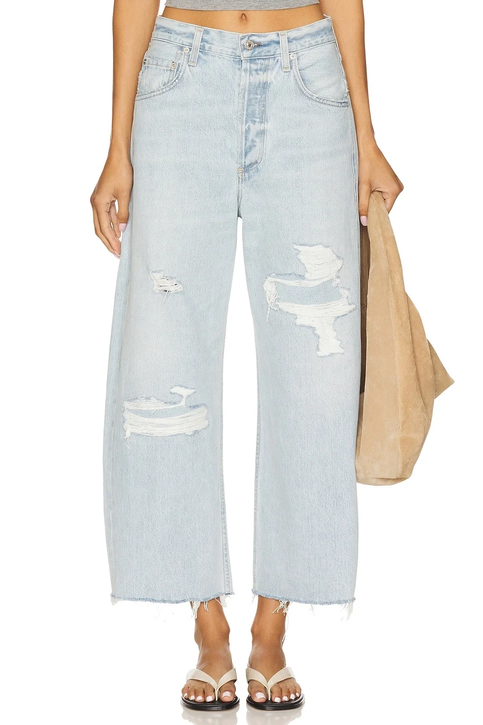 - 100% cotton - Made in USA of Imported materials - Button fly closure.5-pocket design - Rigid denim with distressed detailing throughout.22" at the knee narrows to 20" at the leg opening - Revolve Style No. CITI-WJ1983 - Manufacturer Style No. 2117G-3011