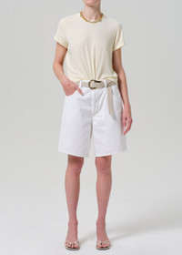 The Ayla Short, inspired by our best-selling Ayla Baggy, offers the perfect balance of ease and versatility. Designed with a relaxed fit and a just-right inseam, it transitions effortlessly from beachside lounging to an elevated evening look. This essential short pairs seamlessly with denim shirting for a chic, head-to-toe statement. This fit is true to size. Looks Like: True white denim short with a clean hem Feels Like: Rigid, non-stretch denim with an authentic feel From our HUMANITY Collection DETAILS Closure: Button Fly Rise: 12" Inseam: 10" Leg Opening: 23 1/2" Model is 5'10 and wearing a size 27 Fabric Content: 100% Cotton Care Instructions: Machine wash cold inside out with like colors. Do not bleach. Tumble dry low. Made in Turkey with imported materials 2225-1248_SRNE