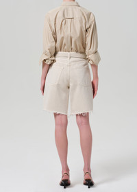 The Ayla Short, inspired by our best-selling Ayla Baggy, offers the perfect balance of ease and versatility. Designed with a relaxed fit and a just-right inseam, it transitions effortlessly from beachside lounging to an elevated evening look. This essential short pairs seamlessly with denim shirting for a chic, head-to-toe statement. This fit is true to size. Looks Like: Warm cream off white denim short with beige tones Feels Like: Rigid, non-stretch denim with an authentic feel From our HUMANITY Collection DETAILS Closure: Button Fly Rise: 12" Inseam: 10" Leg Opening: 23 1/2" Model is 5'10 and wearing a size 27 Fabric Content: 100% Cotton Care Instructions: Machine wash cold inside out with like colors. Do not bleach. Tumble dry low. Made in Turkey with imported materials 2118B-1248_ALMDT