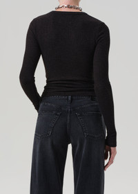 An elevated everyday essential, the Bina Crewneck is crafted from super-soft sweater rib with the perfect hint of stretch. The Heather Brown hue—a rich, dark heathered tone—adds warmth and texture to the slim, long sleeve silhouette. Ideal for layering or wearing solo with denim or soft tailoring. This fit is true to size. Looks Like: Dark heathered brown long sleeve crewneck Feels Like: Midweight intermingle chunky sweater rib that hugs the body From our HUMANITY Collection DETAILS Body Length: 24 1/4" Sleeve Length: 25 1/2" Model is 5'10" and wearing a size Small Fabric Content: 50% Polyester 32% Cotton 18% Rayon Care Instructions: Machine wash cold inside out with like colors. Do not bleach. Tumble dry low. Made in USA with imported materials 9320-3070_HTRBR