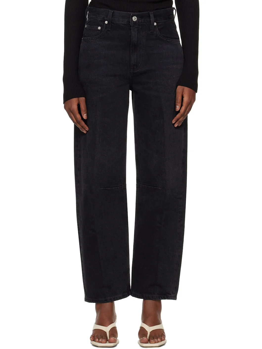 Relaxed-fit tapered non-stretch regenerative cotton denim jeans. Fading and whiskering throughout. · Belt loops · Five-pocket styling · Zip-fly · Logo flag at front waist · Darts at knees · Logo patch at back waistband · Logo-engraved silver-tone hardware Supplier color: Domino 100% regenerative cotton. Made in Turkey 251030F069007