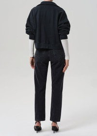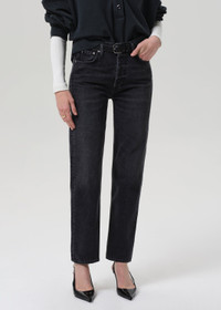The Blaine is a vintage-inspired straight leg, crafted from rigid regenerative cotton denim with a soft, broken-in feel. Designed with a high rise and ankle-grazing length, it offers a structured silhouette that nods to true vintage. The Vintage Black wash—faded and worn-in with tonal highs and lows—delivers effortless edge. Style with relaxed shirting or chunky knits. This fit is true to size. Looks Like: Dark washed out vintage black denim pant Feels Like: Rigid, non-stretch cotton denim with a soft hand for all day wearability From our HUMANITY Collection DETAILS Closure: Button Fly Rise: 11 1/2" Inseam: 29" Leg Opening: 15 1/4" Model is 5'10" and wearing a size 27 Fabric Content: 100% Regenerative Cotton Care Instructions: Machine wash cold inside out with like colors. Do not bleach. Tumble dry low. Made in Turkey with imported materials 2197-3007_VBLL