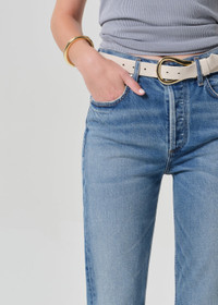 The ‘Blaine’ is a high-rise, vintage-inspired straight leg with an ankle-length inseam and effortless structure. The ‘Alma’ wash is a medium indigo with soft whiskering, crafted from bio-stretch regenerative cotton denim that’s washed down for a lightweight, ultra-soft feel. Style with relaxed tailoring or a slim knit for an elevated, everyday look. This fit is true to size. Looks Like: Medium indigo denim pant Feels Like: Comfort stretch, denim with a super soft hand for all day wearability This product is made with regenerative cotton from Citizens of Humanity Group’s Regenerative Cotton Program. Our program collaborates closely with farmers both domestically and internationally, nurturing growth, fostering education, and encouraging the widespread adoption of regenerative agricultural practices. From our HUMANITY Collection DETAILS Closure: Button Fly Rise: 11 1/2" Inseam: 29" Leg Opening: 15 1/4" Model is 5'10" and wearing a size 27 Fabric Content: 99% Regenerative Cotton 1% Elastane Care Instructions: Machine wash cold inside out with like colors. Do not bleach. Tumble dry low. Made in Turkey with imported materials 2197-1854_AL