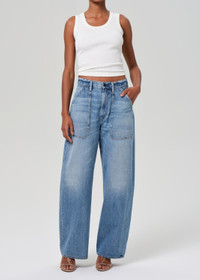 The Ayla Cargo Denim builds off our best-selling Ayla silhouette, featuring an articulated ankle and stylish utility pockets for a modern twist on a classic. With a full-length inseam and crafted from regenerative cotton, this versatile cargo combines the comfort of denim with a utilitarian edge. Perfect for adding a laid-back yet elevated touch to any outfit. This fit is true to size. Looks Like: Light to medium indigo denim with fading and whiskering Feels Like: Rigid, non -stretch regenerative cotton with a soft hand feel This product is made with regenerative cotton from Citizens of Humanity Group’s Regenerative Cotton Program. Our program collaborates closely with farmers both domestically and internationally, nurturing growth, fostering education, and encouraging the widespread adoption of regenerative agricultural practices. From our HUMANITY Collection DETAILS Closure: Zip Fly Rise: 12 1/4" Inseam: 30" Leg Opening: 22" Model is 5'10" and wearing a size 27 Fabric Content: 100% Regenerative cotton Care Instructions: Machine wash cold inside out with like colors. Do not bleach. Tumble dry low. Made in USA with imported materials 2185-1136_ZENTH