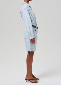 The Ayla Short, inspired by our best-selling Ayla Baggy, offers the perfect balance of ease and versatility. Designed with a relaxed fit and a just-right inseam, it transitions effortlessly from beachside lounging to an elevated evening look. Crafted from 100% cotton, this essential short pairs seamlessly with denim shirting for a chic, head-to-toe statement. This fit is true to size. Looks Like: Vintage light blue with subtle fading Feels Like: Mid-weight, non-stretch regenerative cotton with roomy drape for all-day wearability This product is made with regenerative cotton from Citizens of Humanity Group’s Regenerative Cotton Program. Our program collaborates closely with farmers both domestically and internationally, nurturing growth, fostering education, and encouraging the widespread adoption of regenerative agricultural practices. From our HUMANITY Collection DETAILS Closure: Button Fly Rise: 12" Inseam: 10" Leg Opening: 23 1/2" Model is 5'10 and wearing a size 27 Fabric Content: 100% Regenerative Cotton Care Instructions: Machine wash cold inside out with like colors. Do not bleach. Tumble dry low. Made in USA with imported materials 2118-3011_STARL