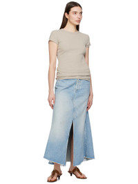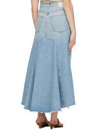 Stretch regenerated cotton- and recycled lyocell-blend denim skirt. Fading, whiskering, and subtle distressing throughout. · Belt loops · Five-pocket styling · Button-fly · Central vent at front · Frayed edge at asymmetric hem · Logo patch at outseam · Leather logo patch at back waistband · Godet at back · Logo-engraved silver-tone hardware · Contrast stitching in tan Part of the HUMANITY collection. Supplier color: Carousel 67% regenerated cotton, 22% recycled lyocell, 11% post consumer recycled cotton. Made in United States 241030F092003