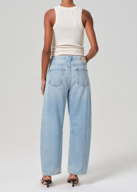 The Miro jean offers a slightly relaxed top block and tapered take on the barrel leg silhouette. This fit is true to size. Looks Like: Light indigo with light fading Feels Like: Non-stretch rigid cotton with a vintage hand feel This product is made with regenerative cotton from Citizens of Humanity Group’s Regenerative Cotton Program. Our program collaborates closely with farmers both domestically and internationally, nurturing growth, fostering education, and encouraging the widespread adoption of regenerative agricultural practices. From our HUMANITY Collection DETAILS Closure: Zip Fly Rise: 11 1/4" Inseam: 27" Leg Opening: 17 3/4" Model is 5'10" and wearing a size 27 Fabric Content: 100% Regenerative Cotton Care Instructions: Machine wash cold inside out with like colors. Do not bleach. Tumble dry low. Made in Turkey with imported materials 2149B-3011_GMINI