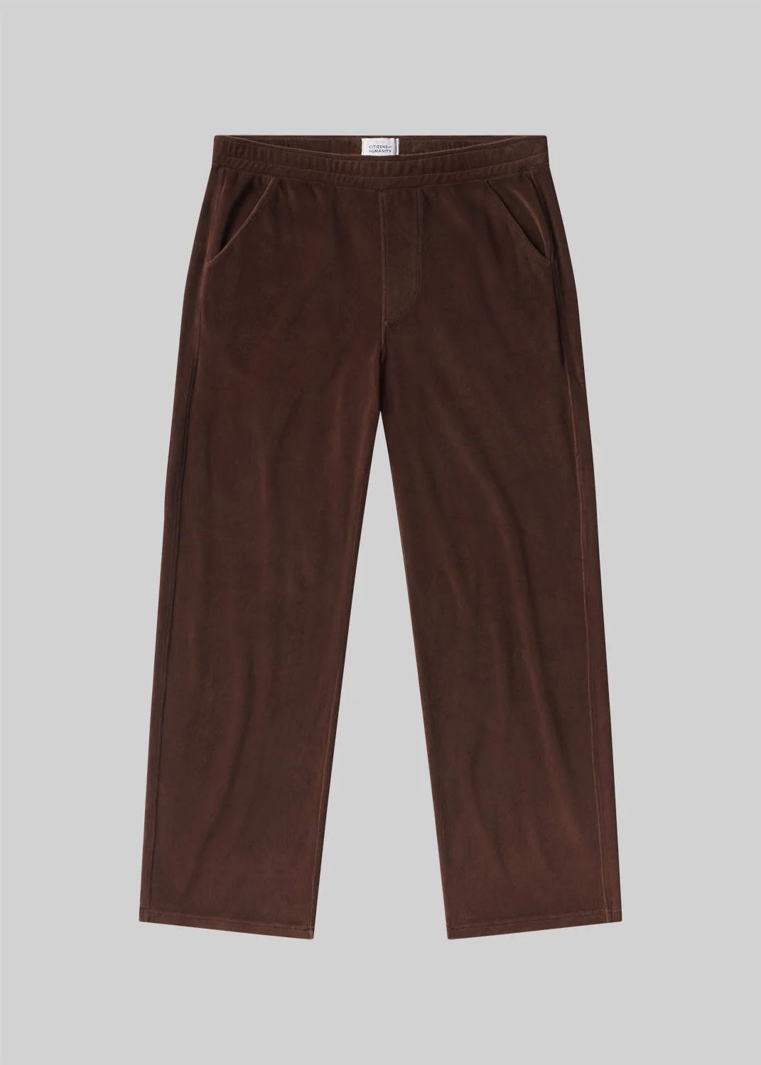 The Brynn pant offers a luxe take on off-duty comfort, cut in plush velour with a smooth, gentle feel. Designed with a high rise and full-length leg, the relaxed silhouette is finished with a tonal drawstring waistband for a laid-back yet elevated look. The rich Cammello shade—a dark, warm brown—adds depth and softness to the styling. This fit is true to size. Looks Like: Dark brown velour drawstring pant Feels Like: Super soft and luxurious plush velour with a smooth yet gentle feel From our HUMANITY Collection DETAILS Rise: 12 1/4" Inseam: 29 1/2" Leg Opening: 22 1/2" Model is 5'10" and wearing a size Small Fabric Content: 80% Cotton 20% Polyester Care Instructions: Machine wash cold inside out with like colors. Do not bleach. Tumble dry low. Made in USA with imported materials 2244-1876_CAMME