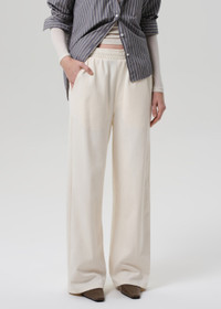 The Brynn pant offers a luxe take on off-duty comfort, cut in plush knit with a smooth, gentle feel. Designed with a high rise and full-length leg, the relaxed silhouette is finished with a tonal drawstring waistband for a laid-back yet elevated look. The Pashmina shade—an off-white with soft warmth—adds lightness and a refined tonal feel to the styling. This fit is true to size. Looks Like: Off white pant with drawstring at the waist Feels Like: Super soft knit with a smooth yet gentle feel From our HUMANITY Collection DETAILS Rise: 12 1/4" Inseam: 29 1/2" Leg Opening: 22 1/2" Model is 5'10" and wearing a size 27 Fabric Content: 100% Cotton Care Instructions: Machine wash cold inside out with like colors. Do not bleach. Tumble dry low. Made in Portugal with imported materials 2244_PMINA