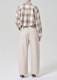 The Brynn Drawstring Trouser is the unofficial everyday jean—relaxed, effortless, and made for sun-soaked days. Crafted from a regenerative cotton with a beautiful drape, it features a comfortable drawstring waist and an easy, laid-back fit. Pair it with tonal separates or a breezy tank for a look that moves seamlessly from the sand to the street. This fit is true to size. Looks Like: Light beige drawstring denim pant Feels Like: Rigid, non-stretch cotton denim with a soft hand for all day wearability This product is made with regenerative cotton from Citizens of Humanity Group’s Regenerative Cotton Program. Our program collaborates closely with farmers both domestically and internationally, nurturing growth, fostering education, and encouraging the widespread adoption of regenerative agricultural practices. From our HUMANITY Collection DETAILS Closure: Button Fly Rise: 12 1/2" Inseam: 30 1/2" Leg Opening: 21 1/2" Model is 5'10" and wearing a size 27 Fabric Content: 100% Regenerative Cotton Care Instructions: Made in USA with imported materials Machine wash cold inside out with like colors. Do not bleach. Tumble dry low. 2069C-1136_PYTE