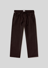 The Brynn Drawstring Trouser offers a relaxed fit with a comfortable drawstring waist, making it the perfect laid-back linen pant. Effortlessly stylish, this versatile trouser pairs beautifully with tonal linen pieces or a matching tank for a chic, coordinated look ideal for warm weather days and vacation-ready escapes. This fit is true to size. Looks Like: Deep dark brown linen trouser with drawstring detail Feels Like: Breathable lightweight linen From our HUMANITY Collection DETAILS Closure: Zip Fly Rise: 12 1/2" Inseam: 30 1/2" Leg Opening: 21 1/2" Model is 5'10" and wearing a size 27 Fabric: 100% Linen Care Instructions: Machine wash cold inside out with like colors. Do not bleach. Tumble dry low. Made in USA with imported materials 2144-1761_CHOCO