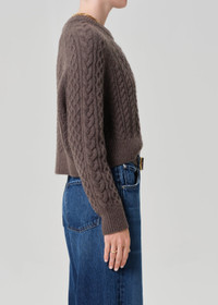 PRE-ORDER Item will be charged at checkout and you will be notified as soon as the order ships. Form meets function in a soft lambswool knit designed for modern life. Relaxed raglan sleeves and subtle cable detailing balance structure with softness, offering quiet confidence and all-day comfort whether working, traveling, or unwinding. This fit is true to size. Argent and Citizens of Humanity reunite for Good Work: Collection Two a capsule that builds on the brands’ shared mission to shape a better future—one that is responsibly crafted and empowers women to look and feel their best. Built on a foundation of sustainable and regenerative materials, Collection Two reimagines tailored denim silhouettes in deep washes; rich seasonal shades of tobacco and cocoa, and a fresh approach to classic suiting, round out the assortment. Designed to move seamlessly from the workplace to life beyond, the capsule reinforces a modern uniform for all facets of life.. DETAILS Body Length: 20" Chest: 39" Sleeve Length: 31 3/8" Model is 5'10" and wearing a size Small Fabric Content: 100% Lambswool Care Instructions: Dry clean only. Made in China with imported materials HL25-1935_TRNBR