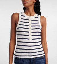 With its soft cotton-blend fabric, the Caralyn tank top from Citizens of Humanity is a go-to for versatility and comfort. This piece is complete with a front partial button closure and a ribbed-knit finish. Product Details - Material: 90% cotton, 10% polyester - Care instructions: machine wash cold - Made in the USA - Designer color name: Azure Stripe - Item color: white, blue - Closure: buttoned placket - Collar: crewneck - Item number: P01057548 Size & Fit - True to size - Fitted - Stretchy fabric - Slightly cropped - The model seen in the picture is 178cm-5'10" and wearing a size XS