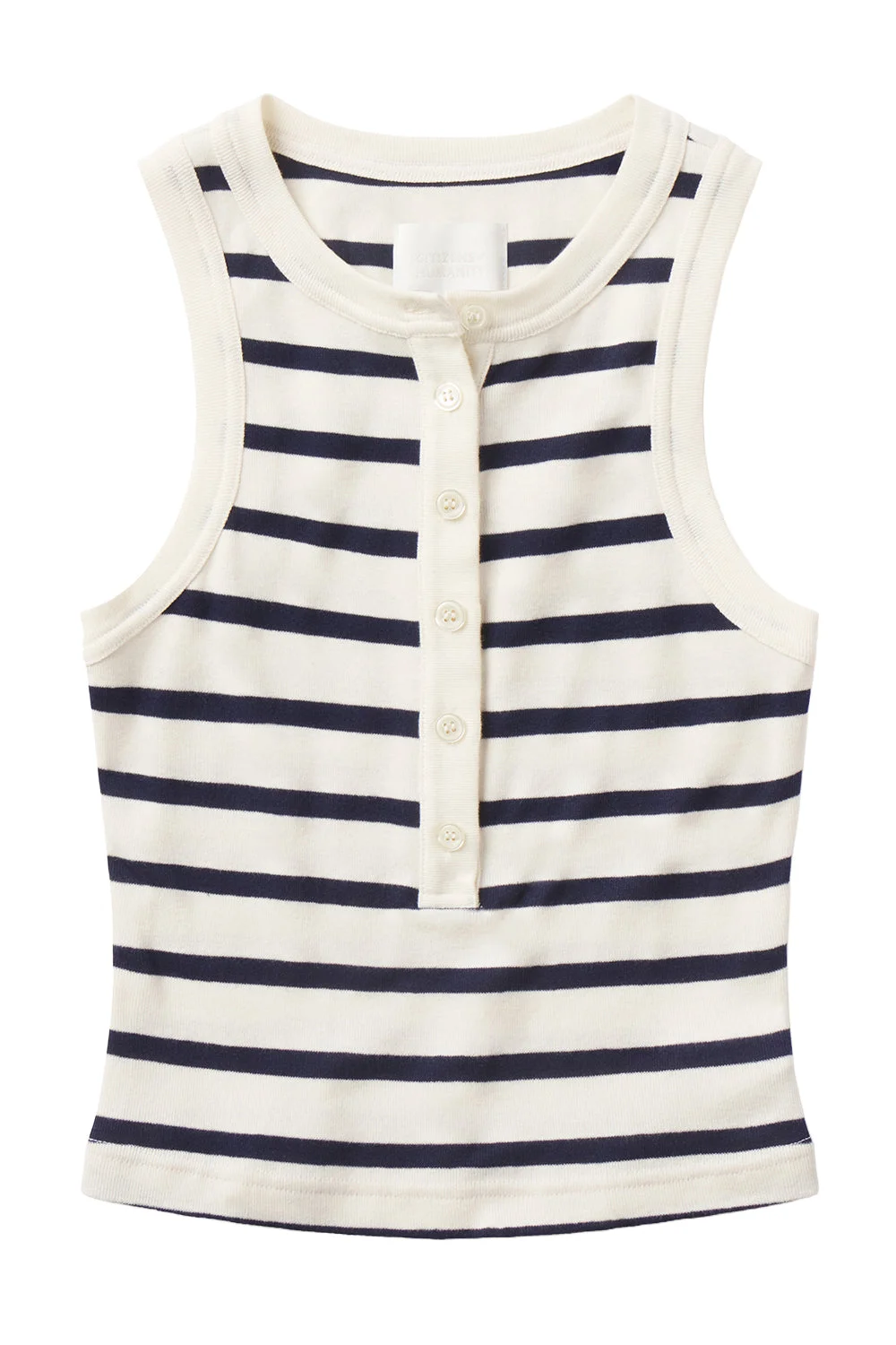 DETAILS AND INSIGHT Citizens Of Humanity caralyn striped tank in azure. 90% Cotton 10% Polyester Machine Wash Cold Inside Out With Like Colors. Do Not Bleach. Tumble Dry Low. Made In Usa Style 9435-1822-AZURE
