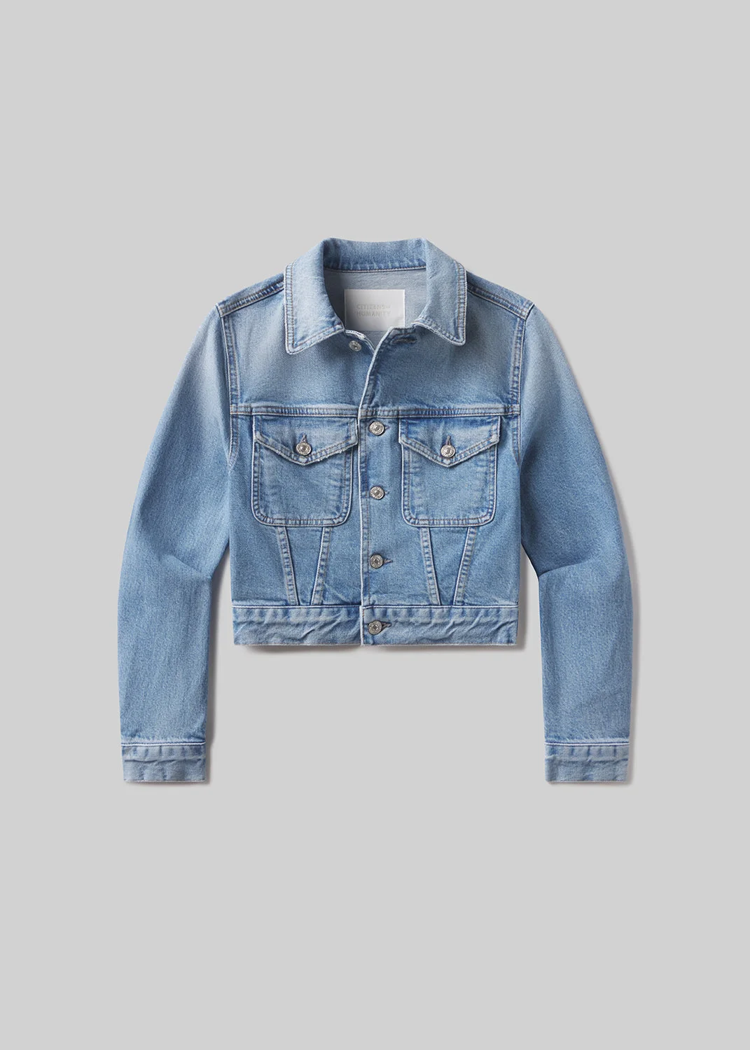 A modern update to a timeless silhouette, the Charisse Shrunken Jacket is crafted from bio-stretch regenerative cotton denim with a super-soft hand. The vintage indigo wash enhances its lived-in character, while the cropped, tailored fit layers effortlessly over tees or lightweight knits for an elevated everyday look. This fit is true to size. Looks Like: Light to medium indigo denim shrunken jacket with front pockets and seam detailing Feels Like: Comfort stretch, denim with a super soft hand for all day wearability This product is made with regenerative cotton from Citizens of Humanity Group’s Regenerative Cotton Program. Our program collaborates closely with farmers both domestically and internationally, nurturing growth, fostering education, and encouraging the widespread adoption of regenerative agricultural practices. From our HUMANITY Collection DETAILS Body Length: 19 1/8" Chest: 37" Sleeve Length: 23" Model is 5'10" and wearing a size Small Fabric Content: 99% Regenerative Cotton 1% Elastane Care Instructions: Machine wash cold inside out with like colors. Do not bleach. Tumble dry low. Made in Turkey with imported materials 5171B-1854_SPRRO