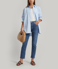 DETAILS Boyfriend-fit jeans High-rise: 11.25" Inseam: 28” Leg-opening: 14" Slim-straight leg Cropped slightly above the ankle Torn cuffs SIZE & FIT Model is 180cm/5'11"; Chest: 81cm; Waist: 61cm; Hip: 89cm; and wears size 26 COMPOSITION & CARE 79% Cotton; 20% Recycled Cotton; 1% Elastane Machine wash cold inside-out, do not tumble dry