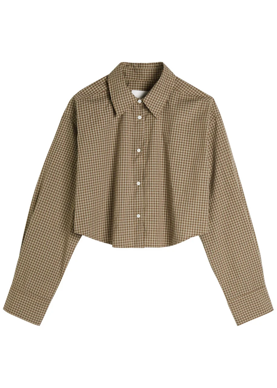 Info & Care Citizens Of Humanity cotton-poplin shirt Checked, dropped shoudlers, button-fastening cuffs, box pleat with tab embellishment at back, curved hem, longer back hem, cropped Button-fastenings through front 100% cotton Machine wash Size & Fit Length;shoulder to hem:;17 inches/ 43cm; back: 19 inches/ 48cm Midweight; Relaxed fit, cropped Model is 5'9"/ 178cm and wears a size small