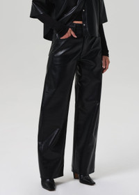 The ‘Ayla’ offers a refined take on the baggy silhouette with a relaxed fit that sits away from the body while maintaining a clean, intentional shape. This version is crafted from buttery recycled leather in a luxe black, finished with slight stretch for added ease. Style back to tonal leather shirting for a directional, head-to-toe look. This fit is true to size. Looks Like: Luxurious true black leather pant Feels Like: Buttery, genuine recycled leather with slight stretch for ease From our HUMANITY Collection DETAILS Closure: Zip Fly Rise: 12" Inseam: 31" Leg Opening: 20 1/2" Model is 5'10" and wearing a size 27 Fabric Content: 50% Recycled Leather 30% Polyurethane 10% Polyester 10% Viscose Care Instructions: Machine wash cold inside out with like colors. Do not bleach. Tumble dry low. Made in Turkey with imported materials 2239-3013_BLK