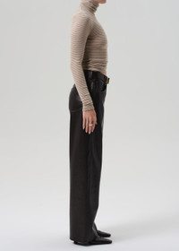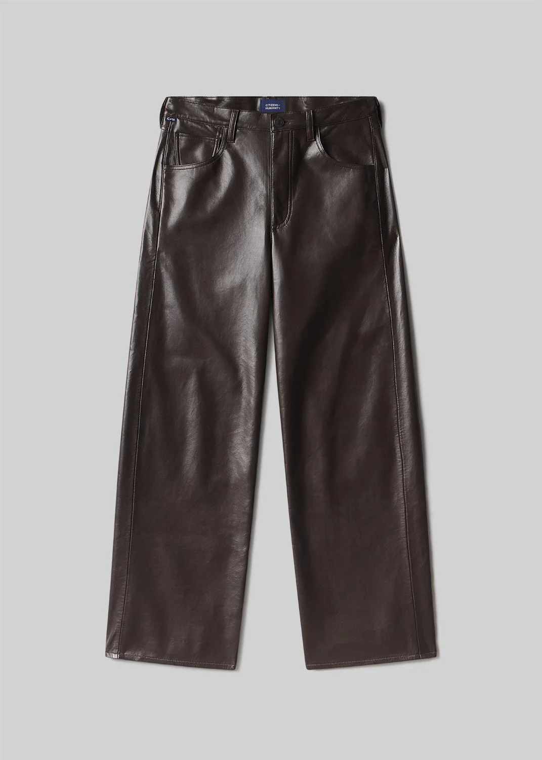 The ‘Ayla’ offers a refined take on the baggy silhouette with a relaxed fit that sits away from the body while maintaining a clean, intentional shape. This version is crafted from buttery recycled leather in a rich chocolate brown, finished with slight stretch for added ease. Style back to tonal leather shirting for a directional, head-to-toe look. This fit is true to size. Looks Like: Luxurious chocolate brown leather pant Feels Like: Buttery, genuine recycled leather with slight stretch for ease From our HUMANITY Collection DETAILS Closure: Zip Fly Rise: 12" Inseam: 31" Leg Opening: 20 1/2" Model is 5'10" and wearing a size 27 Fabric Content: 50% Recycled Leather 30% Polyurethane 10% Polyester 10% Viscose Care Instructions: Machine wash cold inside out with like colors. Do not bleach. Tumble dry low. Made in Turkey with imported materials 2239-3013_CHO
