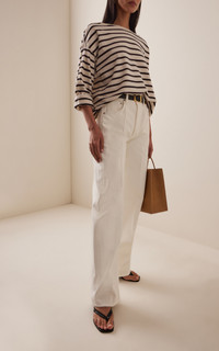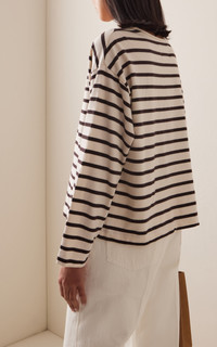 Committed to environmentally friendly, socially conscious production, Los Angeles-based brand Citizens of Humanity crafts high-quality pieces for everyday wear. Crafted from cotton-jersey with chocolate-brown accents, this oversized tee is designed for a boxy fit with a boat neck and dropped sleeves. Polish the look with white pants and leather flip flops. PRODUCT DETAILS - Fall/Winter ‘25 - Pull on - Composition: 100% cotton - Dry clean - Designer Color: Chocolate Stripe - Imported
