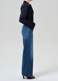 The Lyra is a vintage-inspired wide leg that sits high on the waist with a relaxed top block and full-length inseam. Crafted from soft stretch denim with a lightweight feel, Ambry is a versatile medium-dark indigo with subtle fading—ideal with everything from oversized knits to tailored shirting. This fit is true to size. Looks Like: Medium to dark indigo denim pant Feels Like: Soft, stretch denim with a lightweight feel From our HUMANITY Collection DETAILS Closure: Zip Fly Rise: 11 1/2" Inseam: 32" Leg Opening: 24" Model is 5'10" and wearing a size 27 Fabric Content: 81% Regenerative Cotton 11% Lyocell 6% Elastane Care Instructions: Machine wash cold inside out with like colors. Do not bleach. Tumble dry low. Made in Turkey with imported materials 2209-1691_AMBRY