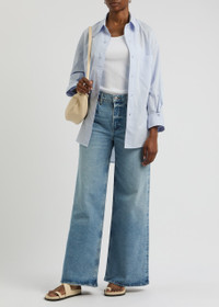 Info & Care Citizens of Humanity cotton shirt; Dropped shoulders, gathered button-fastening cuffs, chest patch pocket, side splits, tab applique at pleated back, curved longer back hem; Button fastenings through front 100% cotton Machine wash Size & Fit Length shoulder to hem: front: 27 inches/ 68.5cm; back: 32 inches/ 81.5cm Midweight Loose fit Model is 5'10"/ 178cm and wears a size small;