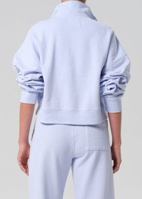 The Mirelle Funnel Neck is crafted from soft brushed fleece with a cozy, plush feel. The light blue silhouette features a button closure and a relaxed funnel neck, offering warmth and effortless style. Perfect paired with denim or lounge bottoms for a casual, polished look. This fit is true to size. Looks Like: Light blue funnel neck sweatshirt with button closure Feels Like: Soft brushed fleece with a cozy plush feel From our HUMANITY Collection DETAILS Body Length: 21 1/4" Chest: 49" Sleeve Length: 22 1/4" Model is 5'10" and wearing a size Small Fabric Content: 100% Cotton Care Instructions: Machine wash cold inside out with like colors. Do not bleach. Tumble dry low. Made in USA with imported materials 9415-3057_PERRI