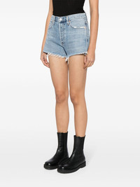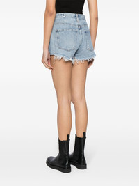 Corey frayed denim shorts Highlights - Light blue - Denim - Mid-rise - Belt loops - Concealed fly and button fastening - Classic five pockets - Frayed edge - Ripped detailing - Please refer to the size & fit tab to learn more about this item's dimensions. Made in United States Composition Polyester 65%, Cotton 35% SIZE & FIT Model measurements Height 5 ft 10 in(1.77 m) Bust/Chest 31.49 in(80 cm) Hips 35.43 in(90 cm) Waist 25.19 in(64 cm) FittingInformation Designed for a relaxed, roomy fit Constructed from stretch denim, this piece offers a stretch fit with durability This piece fits true to size – take your usual size Washing instructions Machine Wash
