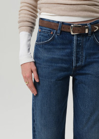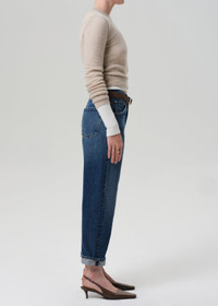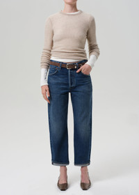 The ‘Dahlia Baby Roll’ is a relaxed tapered jean crafted from rigid regenerative cotton denim with a soft, broken-in feel. Designed with a button fly and optional cuff, it offers ease with a considered finish. The Claremont wash—a medium indigo with soft fading, marbling, and whiskering—evokes a timeless, lived-in feel. Wear it cuffed with sneakers or long with low-heeled boots.. This fit is true to size. Looks Like: Medium indigo denim pant with optional cuff Feels Like: Rigid, non-stretch cotton denim with a soft hand for all day wearability This product is made with regenerative cotton from Citizens of Humanity Group’s Regenerative Cotton Program. Our program collaborates closely with farmers both domestically and internationally, nurturing growth, fostering education, and encouraging the widespread adoption of regenerative agricultural practices. From our HUMANITY Collection DETAILS Closure: Button Fly Rise: 11 1/4" Inseam: 25 1/2" Leg Opening: 16 1/2" Model is 5'10" and wearing a size 27 Fabric Content: 100% Regenerative Cotton Care Instructions: Machine wash cold inside out with like colors. Do not bleach. Tumble dry low. Made in Turkey with imported materials 2119-3017_CLMNT