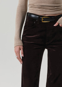 The ‘Delfina’ is a high-rise straight leg crafted from ultra-soft stretch velvet with a smooth, polished finish. Designed for a flattering, easy fit, it blends everyday comfort with elevated texture. The Espresso hue—a rich, dark brown—offers a refined alternative to black, ideal styled with tonal knits or crisp shirting. This fit is true to size. Looks Like: Dark brown velvet pant Feels Like: Ultra soft stretch velvet with a refined, smooth polished texture From our HUMANITY Collection DETAILS Closure: Zip Fly Rise: 11 1/2" Inseam: 27 1/2" Leg Opening: 15 3/4" Model is 5'10" and wearing a size 27 Fabric Content: 54% Cotton 44% Rayon 2% Spandex Care Instructions: Machine wash cold inside out with like colors. Do not bleach. Tumble dry low. Made in Turkey with imported materials 2250-1184_ESPR