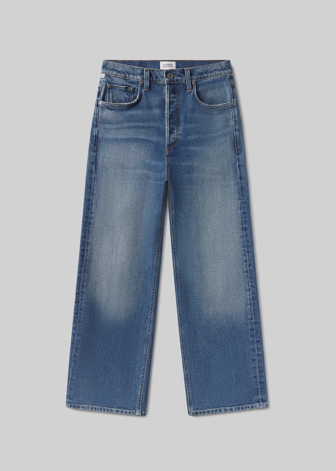 The ‘Delfina’ is a high-rise straight leg crafted from comfort stretch denim with a soft, broken-in hand. Designed to flatter while allowing ease, it offers a clean silhouette that moves effortlessly with the body. The Cici wash—a dark-to-medium indigo with soft fading and marbling—adds lived-in character. Ideal styled with crisp shirting or a tucked knit. This fit is true to size. Looks Like: Dark to medium indigo denim pant Feels Like: Comfort stretch, denim with a super soft hand for all day wearability This product is made with regenerative cotton from Citizens of Humanity Group’s Regenerative Cotton Program. Our program collaborates closely with farmers both domestically and internationally, nurturing growth, fostering education, and encouraging the widespread adoption of regenerative agricultural practices. Eco-Indigo is a first-of-its-kind, high-performance textile dye. It transforms renewable resources like sugar through fermentation and green chemistry to create vibrant, lasting COLOR. This groundbreaking process reduces energy consumption, CO₂ emissions, and dependence on fossil fuels, thus help preserving our environment. Now applied to our regenerative cotton denim, Eco-Indigo is coloring the way for a more sustainable future. From our HUMANITY Collection DETAILS Closure: Button Fly Rise: 11 1/2" Inseam: 27 1/2" Leg Opening: 15 3/4" Model is 5'10" and wearing a size 27 Fabric Content: 99% Regenerative Cotton 1% Elastane Care Instructions: Machine wash cold inside out with like colors. Do not bleach. Tumble dry low. Made in Turkey with imported materials 2250B-1854_CICI