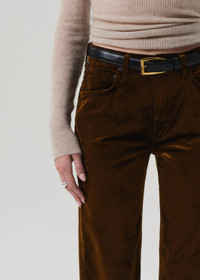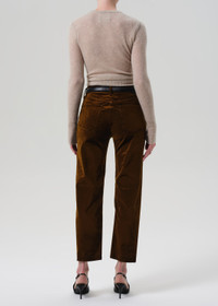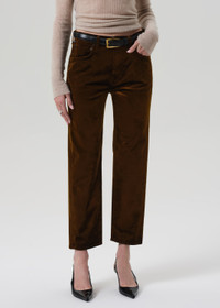 The ‘Delfina’ is a high-rise straight leg crafted from ultra-soft stretch velvet with a smooth, polished finish. Designed for a flattering fit with easy movement, it offers a sophisticated update to everyday dressing. The Golden hue—a rich olive green—adds an earthy, refined tone that pairs effortlessly with crisp shirting or tonal knits. This fit is true to size. Looks Like: Medium olive green velvet pant Feels Like: Ultra soft stretch velvet with a refined, smooth polished texture From our HUMANITY Collection DETAILS Closure: Zip Fly Rise: 11 1/2" Inseam: 27 1/2" Leg Opening: 15 3/4" Model is 5'10" and wearing a size 27 Fabric Content: 54% Cotton 44% Rayon 2% Spandex Care Instructions: Machine wash cold inside out with like colors. Do not bleach. Tumble dry low. Made in Turkey with imported materials 2250-1184_GOLDE