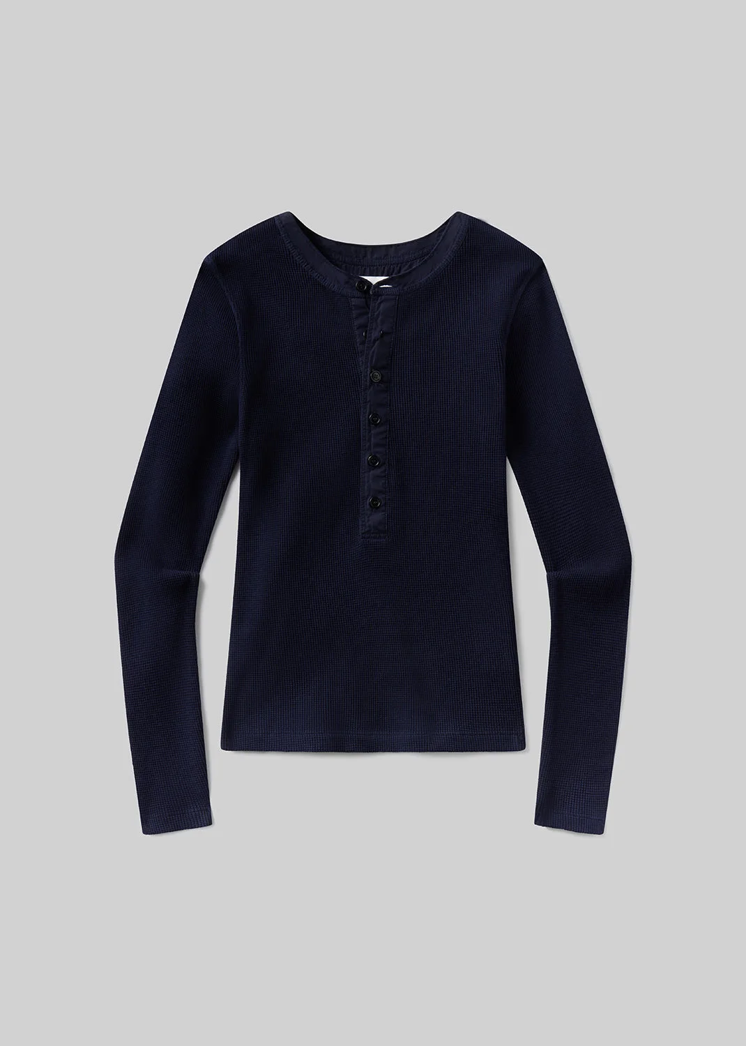 The Drea is a refined henley crafted from ultra-soft regenerative cotton in a textured waffle rib. Designed with a close fit and subtle neckline detailing, it offers supportive stretch and effortless versatility—perfect on its own or layered under your favorite pieces. This fit is true to size. Looks Like: Deep navy long sleeve waffle textured henley Feels Like: Midweight soft cotton with waffle thermal texture throughout This product is made with regenerative cotton from Citizens of Humanity Group’s Regenerative Cotton Program. Our program collaborates closely with farmers both domestically and internationally, nurturing growth, fostering education, and encouraging the widespread adoption of regenerative agricultural practices. From our HUMANITY Collection DETAILS Body Length: 23 1/2" Chest: 26 1/2" Sleeve Length: 24 1/2" Model is 5'10" and wearing a size Small Fabric Content: 100% Regenerative Cotton Care Instructions: Machine wash cold inside out with like colors. Do not bleach. Tumble dry low. Made in USA with imported materials 9476-1785_NVY