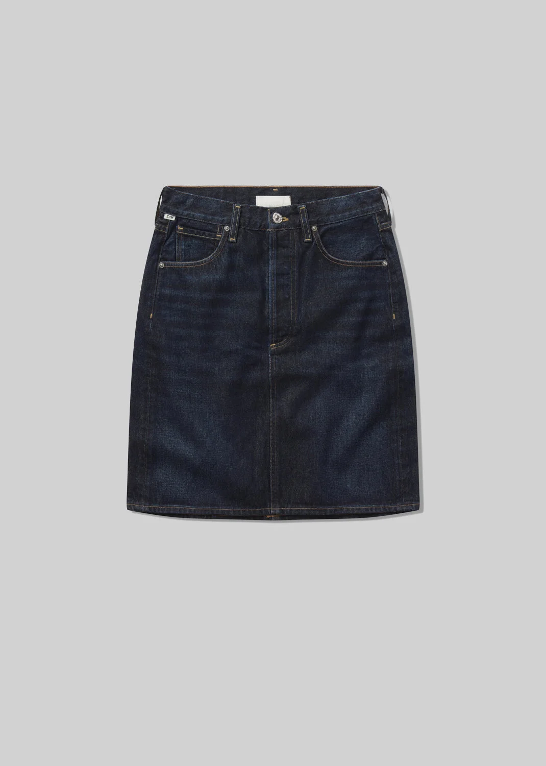 The ‘Etta’ skirt offers a clean, modern take on the classic pencil silhouette. Crafted from rigid regenerative denim with a soft hand, it’s designed to sit high on the waist with a flattering, streamlined fit. Style with crisp shirting or a slim knit for a refined everyday look. Looks Like: Deep dark indigo denim pencil skirt Feels Like: Rigid, non stretch cotton denim with a soft hand for all day wearability This product is made with regenerative cotton from Citizens of Humanity Group’s Regenerative Cotton Program. Our program collaborates closely with farmers both domestically and internationally, nurturing growth, fostering education, and encouraging the widespread adoption of regenerative agricultural practices. From our HUMANITY Collection DETAILS Closure: Button Fly Sweep: 40" Model is 5'10" and wearing a size 27 Fabric Content: 100% Regenerative Cotton Care Instructions: Machine wash cold inside out with like colors. Do not bleach. Tumble dry low. Made in USA with imported materials 3189-3041_DPAZU