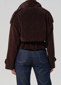 A fresh take on outerwear, the Short Favi Trench features a cropped, crossover silhouette with an optional tie at the waist. The velvety finish adds depth and texture—ideal for layering over slim knits or tailored trousers. This fit is true to size. Looks Like: Dark bronzed velvet cropped cross over jacket with optional tie at waist Feels Like: Smooth, soft midweight corduroy with slight stretch for all day comfort From our HUMANITY Collection DETAILS Body Length: 20 1/2" Chest: 47" Sleeve Length: 21 1/2" Model is 5'10" and wearing a size Small Fabric Content: 98% Cotton 2% Elastane Care Instructions: Dry clean only. Made in Turkey with imported materials 5151_MNUKA