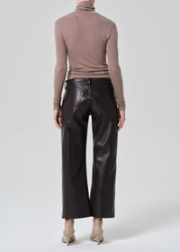 A modern nod to boyish vintage style, the Faye sits low on the hip with a contoured inseam that enhances its slouchy, reimagined fit. Crafted from buttery recycled leather in a chocolate brown hue, this cropped silhouette offers a refined balance of structure and softness—with just the right amount of stretch for ease and comfort. This fit is true to size. Looks Like: Dark chocolate brown recycled leather pant Feels Like: Buttery, recycled leather with slight stretch for ease From our HUMANITY Collection DETAILS Closure: Zip Fly Rise: 9 5/8" Inseam: 27 1/2" Leg Opening: 19" Model is Made in Turkey with imported materials Fabric Content: 50% Recycled Leather 30% Polyurethane 10% Viscose 10% Polyester Care Instructions: Dry clean only. Made in Turkey with imported materials 2289-3013_CHO