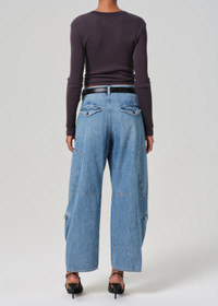 Vintage-inspired utility fit with a pleated waist and barrel leg silhouette. This fit is true to size. Looks Like: Light to medium indigo cargo pant with pleat detailing and side pockets Feels Like: Rigid, non-stretch regenerative cotton with a soft hand feel This product is made with regenerative cotton from Citizens of Humanity Group’s Regenerative Cotton Program. Our program collaborates closely with farmers both domestically and internationally, nurturing growth, fostering education, and encouraging the widespread adoption of regenerative agricultural practices. From our HUMANITY Collection DETAILS Closure: Zip Fly Rise: 12 1/4" Inseam: 29" Leg Opening: 19" Model is 5'10" and is wearing a Size 27 Fabric Content: 100% Regenerative Cotton Care Instructions: Machine wash cold inside out with like colors. Do not bleach. Tumble dry low. Made in USA with imported materials 2200-1136_ZENTH