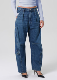 The Flight Pant is cut from rigid, non-stretch denim with a soft hand for all-day wearability. Featuring pleat detailing and cargo pockets, the medium to dark indigo denim has subtle fading, marbling, and whiskering for a lived-in feel. The relaxed, baggy wide-leg silhouette tapers slightly at the ankle, making it versatile for both casual and elevated styling. This fit is true to size. Looks Like: Medium to dark indigo denim pant with pleat detailing and cargo pockets Feels Like: Rigid, non-stretch cotton denim with a soft hand for all day wearability This product is made with regenerative cotton from Citizens of Humanity Group’s Regenerative Cotton Program. Our program collaborates closely with farmers both domestically and internationally, nurturing growth, fostering education, and encouraging the widespread adoption of regenerative agricultural practices. From our HUMANITY Collection DETAILS Closure: Zip Fly Rise: 12 1/4" Inseam: 29" Leg Opening: 19" Model is 5'10" and is wearing a Size 27 Fabric Content: 100% Regenerative Cotton Care Instructions: Machine wash cold inside out with like colors. Do not bleach. Tumble dry low. Made in Turkey with imported materials 2200B-1136_AM