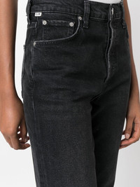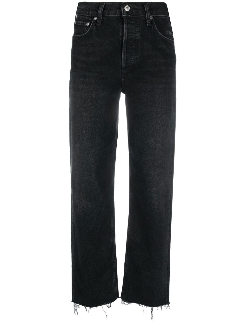 Florence cropped straight-leg jeans Highlights - Black - Cotton blend - Washed - Distressed effect - Logo-embossed patch to the rear - Whiskering effect at the thighs - Mid-rise - Belt loops - Classic five pockets - Straight leg - Cropped - Raw-cut hem - We've partnered with good on you â an independent agency that rates how brands perform in relation to their impact on the planet, people and animals, with a multi-criteria rating simplified to a five points scale. in order to be awarded our conscious label, larger brands need to score a minimum of four out of five ('good'), while smaller brands must score at least three out of five ('it's a start'). - This item comes from a brand rated three out of five ('it's a start') by good on you at the time it was added on farfetch. please note, this is a brand-level rating and does not guarantee that this product is made with conscious materials. - Learn more about what makes a product conscious on our conscious criteria page Imported Composition Cotton 98%, Polyurethane 2% SIZE & FIT Model measurements Height 5 ft 11 in(1.8 m) Bust/Chest 31.88 in(81 cm) Hips 33.85 in(86 cm) Waist 23.62 in(60 cm) FittingInformation This piece fits true to size. We recommend you get your regular size Cut for a slim fit Made with a mid-weight non-stretch fabric