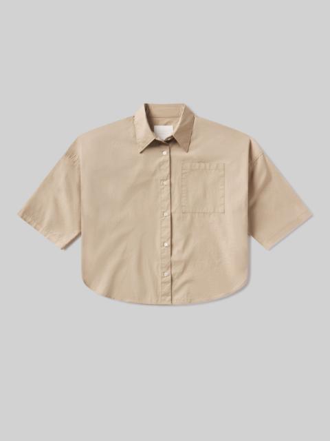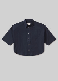 The ‘Frances’ is a fresh take on the classic button-up, crafted from ultra-lightweight cotton poplin with an airy, breathable feel. Designed with a cropped silhouette and subtle cape-inspired back detail, it blends structure with softness. Style it with high-rise denim or tailored shorts for a modern, effortless look. This fit is true to size. Looks Like: Dark navy cropped short sleeve button up shirt Feels Like: Ultra lightweight breathable cotton with an airy hand From our HUMANITY Collection DETAILS Body Length: 22 3/4" Chest: 45 1/2" Sleeve Length: 9 1/2" Model is 5'10" and wearing a size Small Fabric Content: 100% Cotton Care Instructions: Machine wash cold inside out with like colors. Do not bleach. Tumble dry low. Made in Turkey with imported materials 9439-1847_NVY