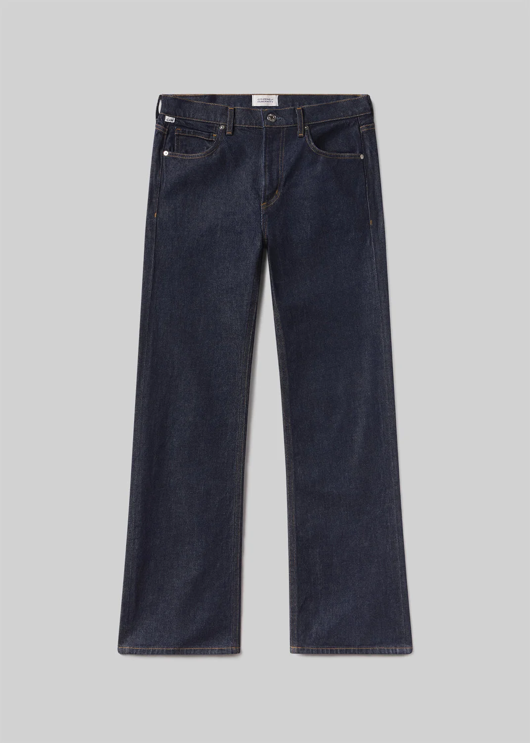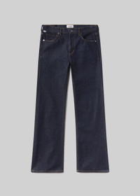 The Genova is a low-rise bootcut silhouette designed to elongate and flatter. Crafted from comfort stretch denim made with regenerative cotton, it has a soft, broken-in hand and just the right amount of give. The Helia wash—a clean, dark indigo rinse—offers a polished, versatile finish. The full-length leg works effortlessly with any kind of shoe—from boots to sneakers to heels. This fit is true to size. Looks Like: Clean dark rinsed out indigo denim pant Feels Like: Comfort stretch, denim with a super soft hand for all day wearability This product is made with regenerative cotton from Citizens of Humanity Group’s Regenerative Cotton Program. Our program collaborates closely with farmers both domestically and internationally, nurturing growth, fostering education, and encouraging the widespread adoption of regenerative agricultural practices. Eco-Indigo is a first-of-its-kind, high-performance textile dye. It transforms renewable resources like sugar through fermentation and green chemistry to create vibrant, lasting COLOR. This groundbreaking process reduces energy consumption, CO₂ emissions, and dependence on fossil fuels, thus help preserving our environment. Now applied to our regenerative cotton denim, Eco-Indigo is coloring the way for a more sustainable future. From our HUMANITY Collection DETAILS Closure: Zipper Fly Rise: 9 7/8" Inseam: 31 3/4" Leg Opening: 18 1/2" Model is 5'10" and wearing a size 27 Fabric: 99% Regenerative Cotton 1% Elastane Care Instructions: Machine wash cold inside out with like colors. Do not bleach. Tumble dry low. Made in Turkey with imported materials 2195-1854_HELIA