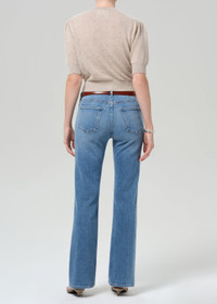 The Genova is a low-slung bootcut crafted from our signature denim, blended with cashmere for an exceptionally soft hand. Sitting naturally on the hips, the silhouette extends into a full-length bootcut that elongates and refines. Finished in a light-to-medium indigo wash, it’s an effortlessly versatile piece that moves with ease from day to evening. This fit is true to size. Looks Like: Light to medium indigo denim pant Feels Like: Signature denim blended with cashmere for a super soft hand From our HUMANITY Collection DETAILS Closure: Zip Fly Inseam: 31 3/4" Leg Opening: 18 1/2" Model is 5'10" and wearing a size 27 Fabric Content: 93% Cotton 5.5% Cashmere 1.5% Elastane Care Instructions: Machine wash cold inside out with like colors. Do not bleach. Tumble dry low. Made in Turkey with imported materials 2195B-1617_SLLA
