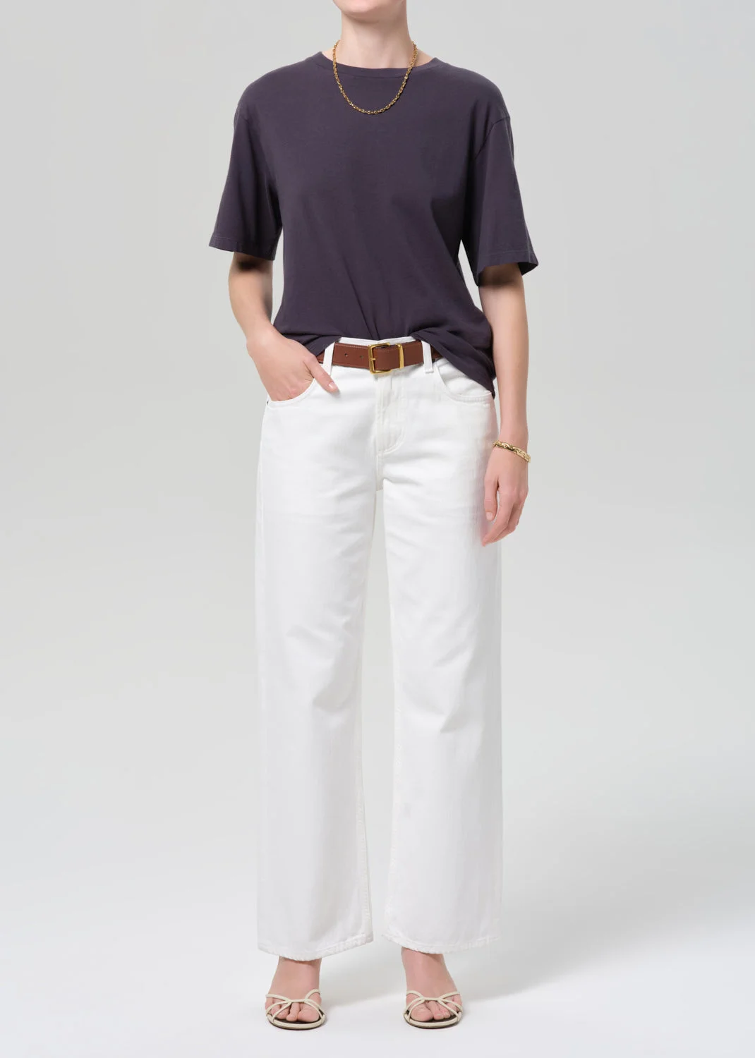 The Goldie Tee is a refined everyday staple, crafted from 100% organic cotton in a dark charcoal grey. Made from lightweight, ultra-soft jersey, it offers breathable comfort with a clean, polished feel. Designed with a slim fit and classic short sleeves, it delivers easy versatility and a flattering finish—perfect paired with high-rise denim or layered under relaxed tailoring. This fit is true to size. Looks Like: Dark charcoal grey relaxed short sleeve tee Feels Like: Lightweight ultra soft jersey cotton This product is made with regenerative cotton from Citizens of Humanity Group’s Regenerative Cotton Program. Our program collaborates closely with farmers both domestically and internationally, nurturing growth, fostering education, and encouraging the widespread adoption of regenerative agricultural practices. From our HUMANITY Collection DETAILS Body Length: 24" Chest: 39 1/2" Sleeve Length: 8 1/2" Model is 5'10" and wearing a size Small Fabric Content: 100% Regenerative Cotton Care Instructions: Machine wash cold inside out with like colors. Do not bleach. Tumble dry low. Made in USA with imported materials 9272-1034_CHCL