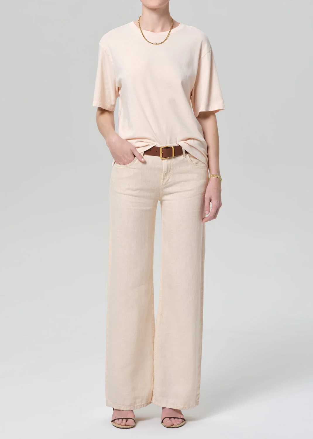 "The Goldie Tee is a refined everyday staple, crafted from 100% organic cotton in a pale coral pink hue. Made from lightweight, ultra-soft jersey, it offers breathable comfort with a clean, polished feel. Designed with a slim fit and classic short sleeves, it delivers easy versatility and a flattering finish—perfect paired with high-rise denim or layered under relaxed tailoring." This fit is true to size. Looks Like: Pale coral pink relaxed short sleeve tee Feels Like: Lightweight ultra soft jersey cotton This product is made with regenerative cotton from Citizens of Humanity Group’s Regenerative Cotton Program. Our program collaborates closely with farmers both domestically and internationally, nurturing growth, fostering education, and encouraging the widespread adoption of regenerative agricultural practices. From our HUMANITY Collection DETAILS Body Length: 24" Chest: 39 1/2" Sleeve Length: 8 1/2" Model is 5'10" and wearing a size Small Fabric Content: 100% Regenerative Cotton Care Instructions: Machine wash cold inside out with like colors. Do not bleach. Tumble dry low. Made in USA with imported materials 9272-1034_SHRMP