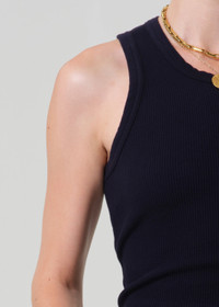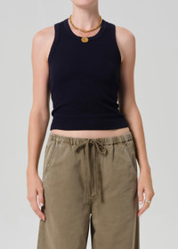 The Inez Tank is a refined take on a classic thermal, crafted from midweight cotton with a soft waffle texture throughout. Designed for a close fit with a clean neckline and minimal finish, it offers easy layering and everyday comfort. Pair it with relaxed denim or tailored trousers for effortless contrast. This fit is true to size. Looks Like: Dark navy waffle thermal sleeveless tank Feels Like: Midweight soft cotton with waffle thermal texture throughout From our HUMANITY Collection DETAILS Body Length: 20 1/2" Chest: 24 1/2" Model is 5'10" and wearing a size Small Fabric Content: 100% Cotton Care Instructions: Machine wash cold inside out with like colors. Do not bleach. Tumble dry low. Made in USA with imported materials 9428-1785_NVY