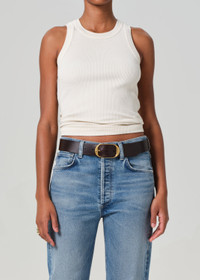 The Isabel Tank is a modern essential, cut in ultra-soft, supportive ribbed cotton with a close, flattering fit. Designed with a high neckline and clean finish, it’s ideal worn solo or layered under structured pieces. A polished base for elevated everyday styling. This fit is true to size. Looks Like: Light beige high neck tank top Feels Like: Rib organic cotton with the softest hand From our HUMANITY Collection DETAILS Body Length: 21 1/4" Model is 5'10" and wearing a size Small Fabric Content: 49% Tencel Lyocell 49% Organic Cotton 2% Spandex Care Instructions: Machine wash cold Made in USA with imported materials 9201-3004_DN