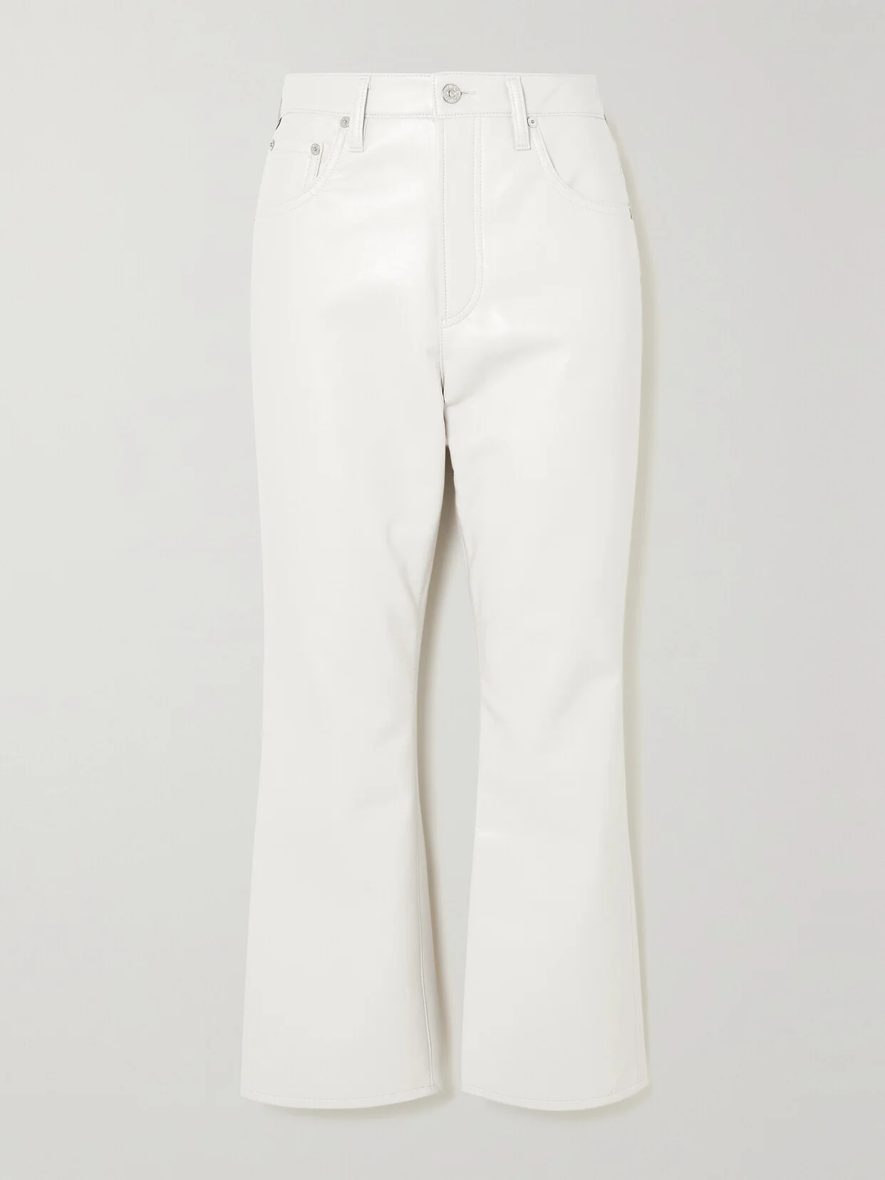 Style and fit are all essential to Citizens of Humanity's designs, which is why you'll want to keep wearing them for years to come. These 'Isola' pants are cut from recycled leather-blend with a high-rise waist and cropped, flared legs. Their versatile off-white hue will go with so many pieces.