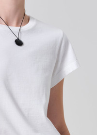 The Kai Tee redefines the everyday essential with a clean, modern silhouette. Cut from lightweight, super-soft jersey cotton, it features a classic crew neckline, relaxed sleeves, and a slightly structured drape that holds its shape while maintaining effortless comfort. The fit is easy yet refined—perfectly balanced for tucking into denim or wearing loose for a laid-back, polished look. This fit is true to size. Looks Like: Clean soft white short sleeve baby tee Feels Like: Lightweight super soft jersey cotton From our HUMANITY Collection DETAILS Body Length: 21" Chest: 35 3/4" Sleeve Length: 5" Model is 5'10" and is wearing a size Small Fabric Content: 100% Cotton Care Instructions: Machine wash cold inside out with like colors. Do not bleach. Tumble dry low. Made in USA with imported materials 9472-3061_SOFTWH