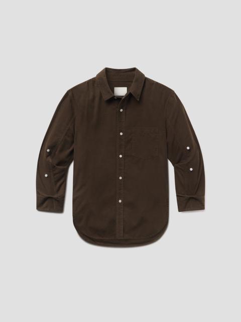 The Kayla Shirt is a timeless button-up reimagined in lightweight baby corduroy with a soft, velvety hand. Designed with a relaxed silhouette and full-length sleeves, it drapes effortlessly for a laid-back yet polished feel. Wear it tucked, layered, or left loose for versatile everyday styling. This fit is true to size. Looks Like: True navy corduroy long sleeve button front shirt Feels Like: Lightweight and breathable baby corduroy that is smooth to the touch From our HUMANITY Collection DETAILS Body Length: 30 1/2" Sleeve Length: 22" Model is 5'10" and wearing a size Small Fabric Content: 100% Cotton Care Instructions: Machine wash cold inside out with like colors. Do not bleach. Tumble dry low. Made in USA with imported materials 9103-1548_TNAVY